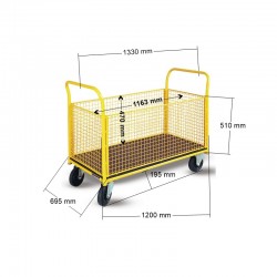 Wózek Platformowy Stach IV z burtami z siatki, 1250x750 mm, 280 kg