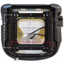 Fotel ma też regulację przód/tył oraz regulację oparcia. Dzięki temu operator może dostosować ustawienia do swoich preferencji.