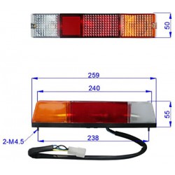 Prezentowana lampa jest przeznaczona do wózków marki Toyota. Została wykonana z tworzywa sztucznego o czarnej obudowie. Posiada 3 żarówki. Lampa zawiera kabel oraz kostkę z 5 pinami.