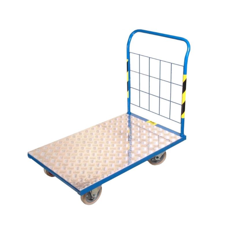 Wózek transportowy Romek H-1 AL jest idealny do magazynów, biur i gospodarstw. Został wykonany z wysokiej jakości stali i posiada wzmocnioną, wodoodporną i antypoślizgową platformę ładunkową oraz łożyska wałeczkowe, co przekłada się na komfortową, bezproblemową eksploatację. Podłoga wózka jest pokryta blachą aluminiową o grubości 2 mm.