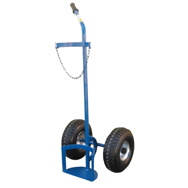 Stalowa konstrukcja pomalowana proszkowo gwarantuje trwałość i ochronę antykorozyjną. Platforma dopasowana jest do kształtu butli, a dodatkowe łańcuszki zapewniają bezpieczny transport.