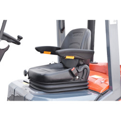 • system OPS, czyli zabezpieczenie, który polega na wykrywaniu obecności operatora na siedzeniu widlaka i automatyczne zatrzymywanie funkcji wózka, kiedy operator je opuści.