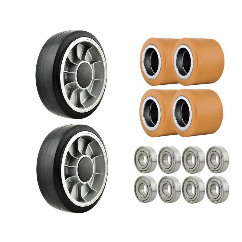 Zestaw kół gumowych i rolek do wózka Jungheinrich AM22 z łożyskami 6204 ZZ